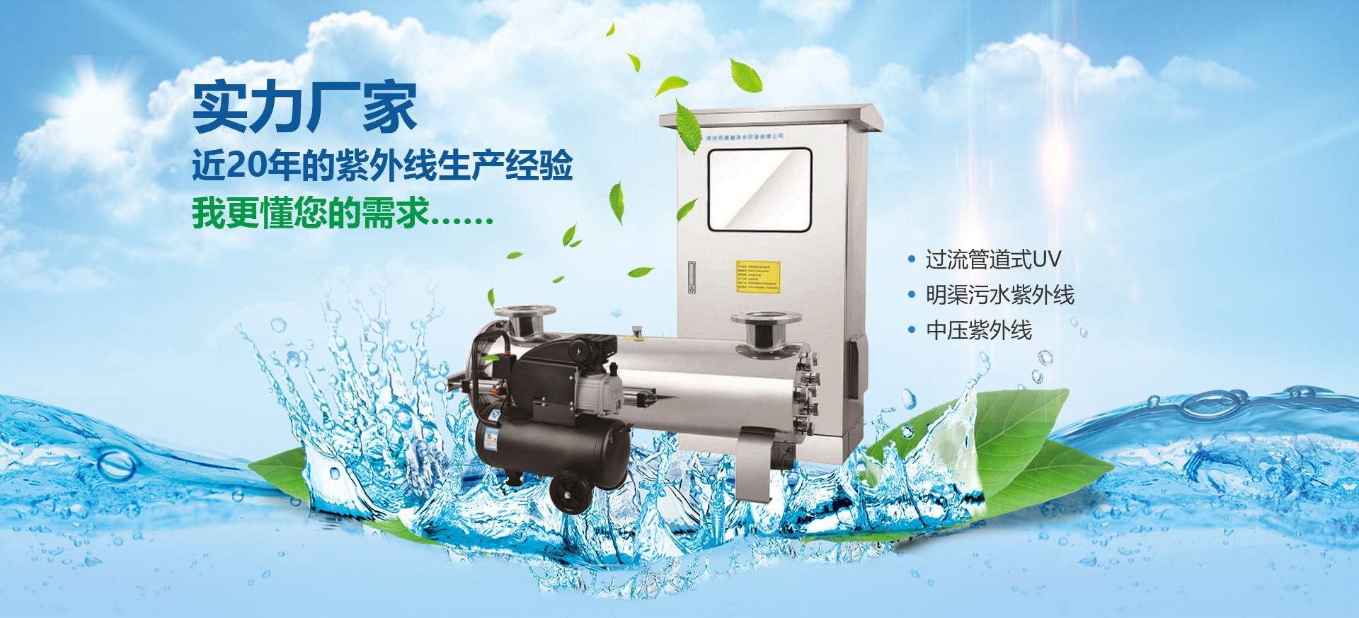 紫外線消毒設備:廣泛用于凈水消毒、市政供水、酒店用水、泳池水、生活污水、循環水、養殖用水等各行業水質殺菌消毒……